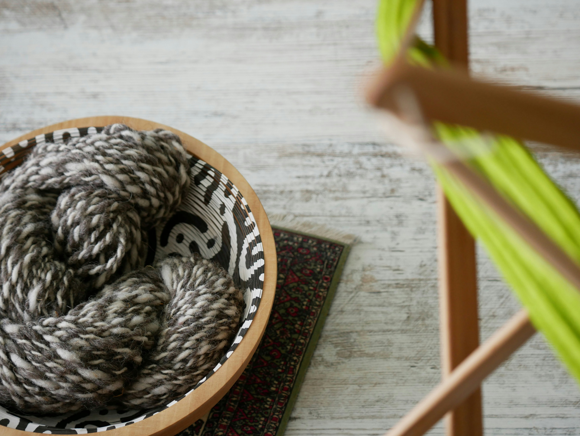 Garnskålen är tillverkad av indisk rosenträ, vilket ger ett robust och naturligt uttryck. Träets struktur och färgtoner gör varje skål unik, samtidigt som materialet är tillräckligt tungt för att stå stabilt på bordet under användning.